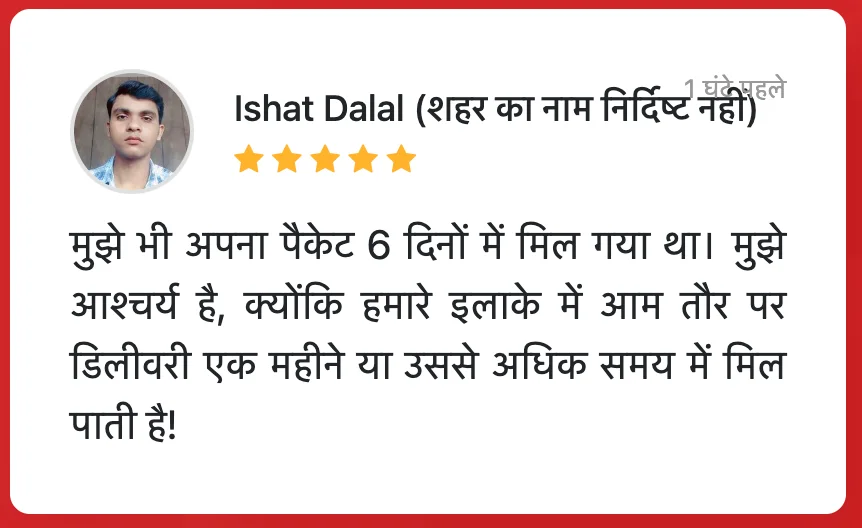 Note : पार्सल आपको पूर्णतः गोपनीय तरीके से मिलता है, जिसे आप घर में या ऑफिस किसी भी लोकेशन पर रिसीव कर सकते है।